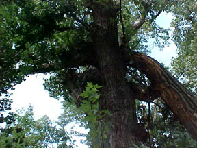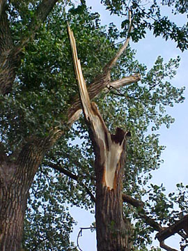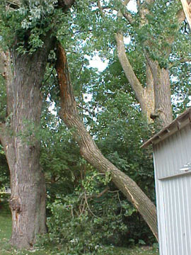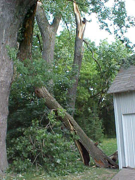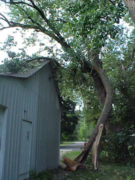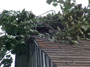 Leah: The large tree next to the garage. Well it came down tonight...pause...onto the garage.