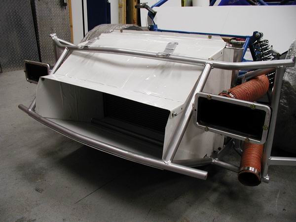 The Huffaker cars had smoother sheet metal than mine, but you get the idea. Anyway, what you want is to minimize the air through the car. You want just enough to keep the car cool and at normal operating temp. The race motors I am familiar with run steady at 210 F coolant and 210 F oil temperature. If you notice, the NASCAR guys will tape over their radiator for qualifying to improve aerodynamics because they can afford to run a high temp for a short time. Probably more than you wanted to know.