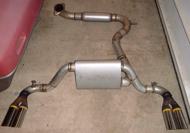 Well the parts cost about $100 for piping and $50 for one muffler. As you can see I have two mufflers and it's still not quiet. If you cut all your piping and have someone weld it, you'd save some money. You could use your old as a template. The Hooker tips are rather pricey, I took them off my old system, which was a 2". When I changed to a bigger pipe I gain almost a full sec. on my 1/4 mile time. Hope this helps