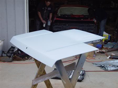 few more pics.. we'll have the fiberglass parts painted next time. We were going to paint the bumpers, but need the flex agent primer I know it's nothing major, but that'll be next week when we get to painting. I'm anxious as heck to see a huge portion of it blue.