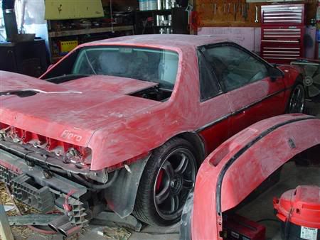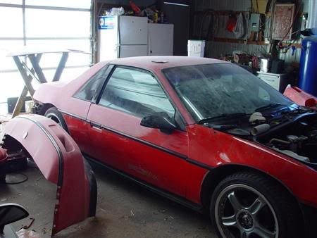Seems wierd to see it all scuffed up.. you going to install hood scoops/vents? Blue will be a lot better :P tons of red Fiero's. Never see you on yahoo what messenger do you use now?