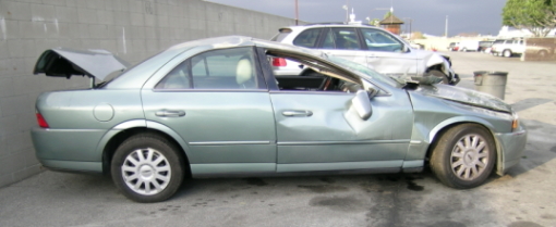 Here's a pic of my 2003 Lincoln LS from last saturday night. My girlfriend and I were hit by a drunk driver in a BMW SUV that spun us out of control (rear hit); then we were hit again (driver's door ?) causing the car to go up an embankment and roll over and skid on its roof. One minute we were on the way to the mall and talking, and in less than 5 minutes we found ourselves upside down held in place by seat belts while we skidded on the front part of the roof wondering when and how it would stop. Since the guy was drunk, I think we were hit full force because he didn't know he was upon us. We were going about 50 mph entering a long exit ramp and he must have been at 90 or over. THANK GOD we were still moving in the direction of impact and not stopped. Neither the dash nor side airbags deployed. Luckily, we were not killed or hospitalized. I'm glad we were in my Lincoln instead of my fiero or her toyota.