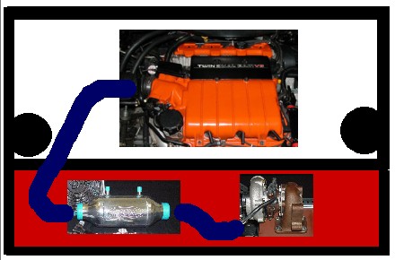 What I'm looking for is efficiency in setup, I might go with a T3/T4 hybrid, and a water to air IC setup, with the heat exchanger placed Directly in the intake quarter. I want to reduce heat coming in, but also going out too. I figure with the Turbo out of the engine bay, this will help in some measure.