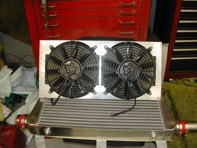 That's a shortend MR2 intercool with MR2 fan under it. And that extractor scoop really keeps it cool in there, thou I sometimes feel like I'm being followed.