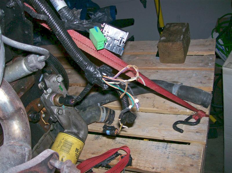 The big plate is to help hold the beauty cover thing in place, just remove it to get it out of your way. Your harness still has the MAP sensor plug so you can always just go get an engine harness that has not been cut up from a 3800 N/A engine to work with if needed. Four of the extra wires by the oil filter are for the second O2 sensor which you do not need and there should be a blue wire there for the knock sensor. If you are not using the EGR then just cap off where the hoses come from the exhaust manifold and the intake, if wanting to use the EGR the one from the N/A engine is the same. Dan