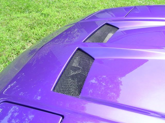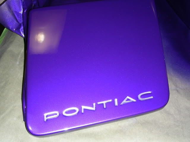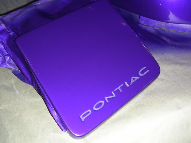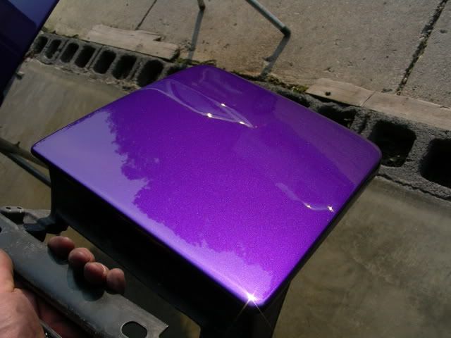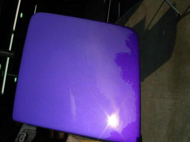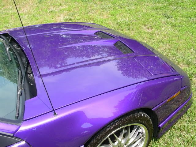 Ok, FINALLY got this stuff painted today after almost a year and a half! Thanks to Lildevil for painting everything and the idea for the headlight door. It was 105 degrees in the shop today and even hotter in the paint booth. We were at the shop from 9am-7pm and I have to go back tomorrow to get the car put back together. Hope to have "finished product" pics tomorrow nite. The BUILD THREAD is here: https://www.fiero.nl/forum/Forum1/HTML/067209.html So here you go, the color is Ultra Violet Metallic, with a little added pearls to it, Lildevil did it, don't know the specifics: HEAD LIGHT DOORS