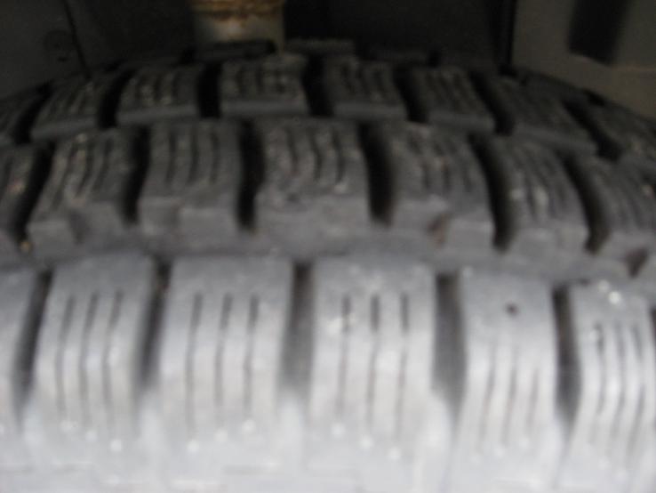 Here you see a picture of the lug pattern. Notice several things here as well. Large, well spaced lugs with lots of area to trap snow in between them. Also notice the wide front-to-back channels that have irregular sides. This helps keep the car tracking in a straight line, HOWEVER also have irregular edges which aids in keeping the tire from skidding forwards as if ti was on mini-snow rails. Also note how the horizontal tread is wide deep channels, intended to keep the tire from just slipping forward and reverse.