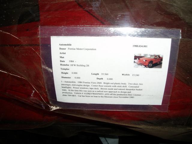 The early ones also have a differnt emergency brake tensioner that can be seen from the rear. Your has been replaced it looks like?? We should start a list for 1984 vin numbers like I have on the Indy's www.fieropacecar.com I could start a forum for it if wanted on my page??? Rick
