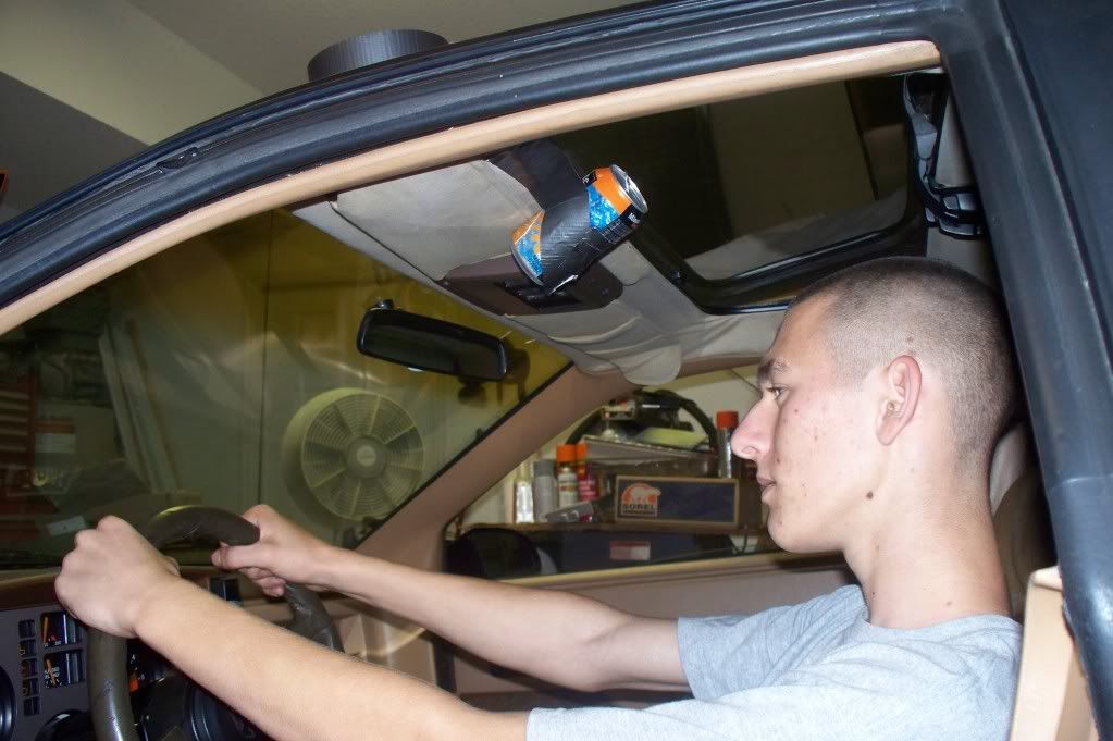 Believe it or not... it fits PERFECTLY behind the seat belt slot just to the right side. Basically, sitting between your body, the seat bolster, the seat belt receptical, and the side console. Haha... that's where I used to put my drinks all the time when my Fiero used to run... many many years ago...