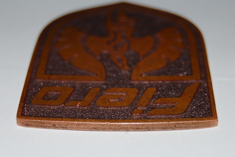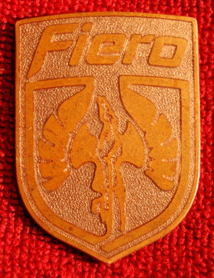 When I bought my first GT back in 1993 (an '86) it had a strange badge on the nose. The PO said he got the badge when he worked at the GM proving grounds in Milford, MI. I removed it and promptly replaced it with with a proper badge and never thought much about it. However, I found it a few days ago going through some things in the house, so I tried looking up Fiero badges on Google and can't find anything like it.