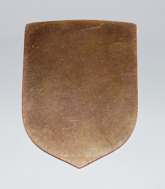 It is copper in color and slightly smaller than a standard GT nose badge. It is solid metal, the lettering and pegasus are raised over the background there is a clear coating over the badge. The badge is about 3mm thick. The first pic shows the color most accurately, at least on my monitor