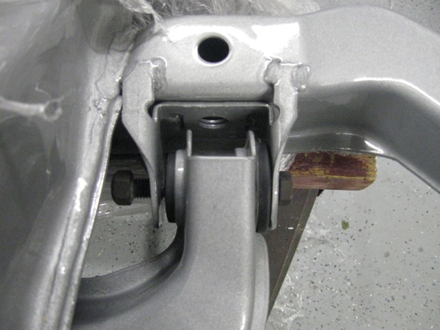 But the question I have is on the spacing for the lower control arms. When the control arms were removed, they fit snuggly into the brackets on the subframe. With the new bushings installed, there is a gap between the bushing and the inner plate (see the below pic).