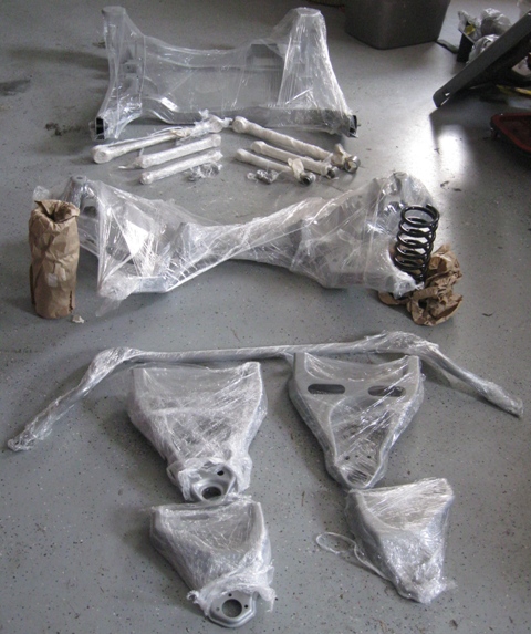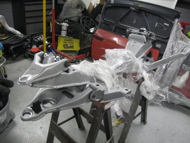 The front bushings have been pressed in and the control arms are back in place.