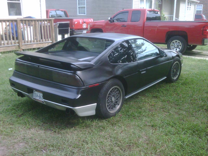 New guy here. I am the guy that USFiero was nice enough to give his 85 SE to. I have had it for a little over a month now and it has undergone some rather signifigant changes. First it has been converted to a fast back. Not exactly a GT as we did not use the GT rockers when we switched it over to a fast back and it still has the groove style mouldings. I finished painting it yesterday. Gloss black and silver. It still needs to be wet sanded and buffed out but I have to wait for the paint to cure a few days. The head liner and visors we recovered and most of the interior switches have been changed over to black. Me and my 14 year old son recovered the headliner ourselves and I recoved the visors with grey cloth. Not a very difficult job if you can use a sewing machine and sew a straight line. The dash has been changed out and the SE horn button was repalced with a GT button. She still needs rear tires and I think the cradle bushings are a little toasted. For those who are curious, the noises that USFiero spoke of were the torque converter bolts had pulled throught the flex plate and tore up the starter, the converter and a few other things. All of those issues have been taken care of. Overall this has been a really fun and exciting time for me and my son. Thanks USFiero for giving us this oportunity. As soon as I can figure out how to post pix I will get some up here. I guess I should start a build thread. LOL. Take care all.