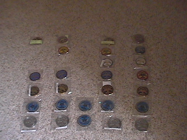 I have one full set with DL10 on them , One full set that is trackable and a few with GBCT on them......I would have 2 other full set if I hadn't sent several coins geocaching