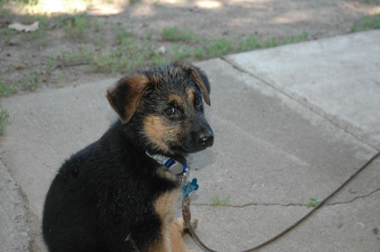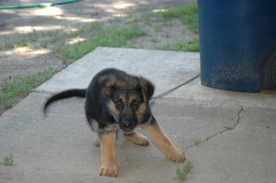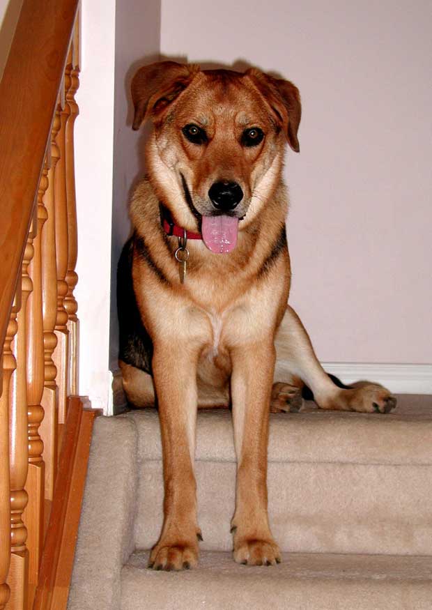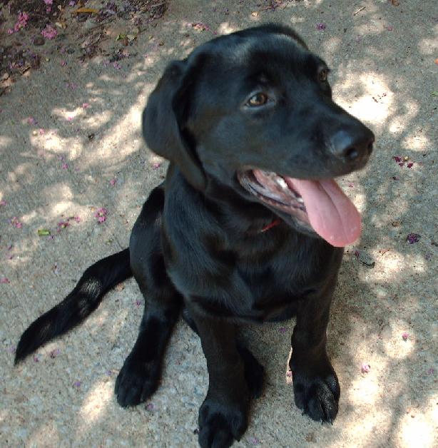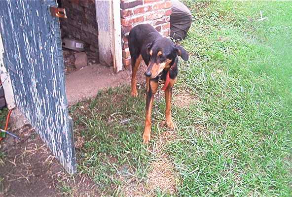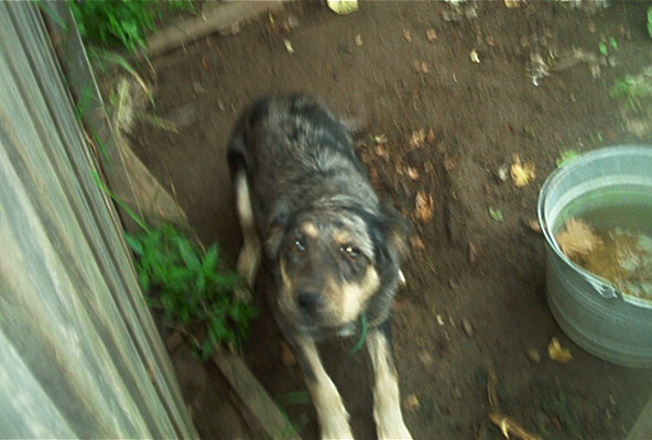 This is Katie the day I got her, about a year ago now. She had heartworms, and I spent a ton of money getting her cured. She is fine and dandy these days, but I had to leave her alone at the house in the back yard all day. She is about 30 lbs.