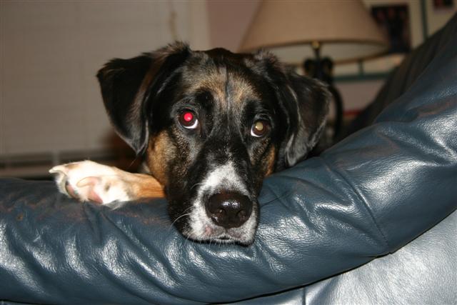 Saatra (42lb 13 year old Doberman mix): If you don't show this dog constant affection she will smack you to death with her paws.