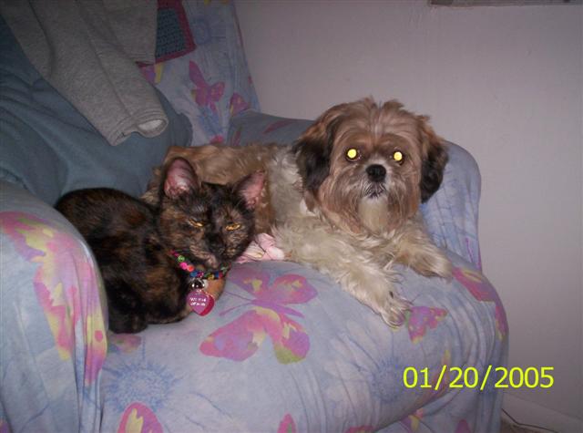 Katie and Petey are best of buddies now. They are just about evenly matched, and when they do their play "fighting", they take turns being the chaser and the chasee. Pretty entertaining. Someday, I will get a good picture of them together being best buds.