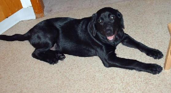 Black Lab, German Sheppard and Border Collie all wrapped up into 90 pounds of too much energy..........I'd post a pic, but the damn dog wont sit still long enough <grin>
