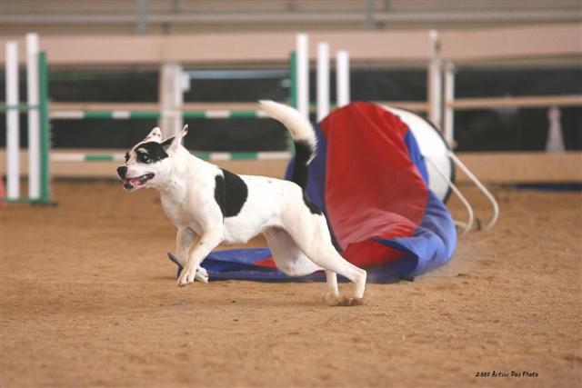 Wynonna (24lb 5 year old German Hunt Terrier - full blood): Vicious little dogs that LOVE to hunt. Great with the family though, not tolerant of any other dog. She stays in the house because of this (except during hunting season). She attacked a Rott 3 times her size and we had to pull her off the poor thing. She had the 200lb dog by the lip and was not going to let go. The Rott was taken aback and would never go near her again. In Germany they use these dogs to hunt wild boar, deer, you name it. Once they grab hold of prey they never let go.