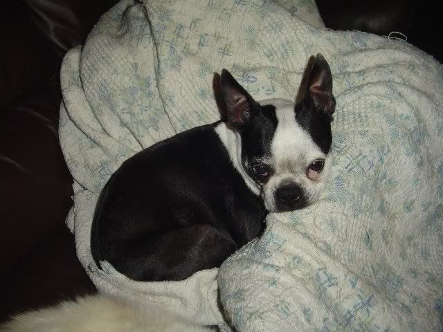 And of course Yoda, she's not registered and eight years old so she will not be breed...however we are hoping to get a few boston terriors with breeding contracts...so that we are not in competition with my parents (golden retriever breeders).