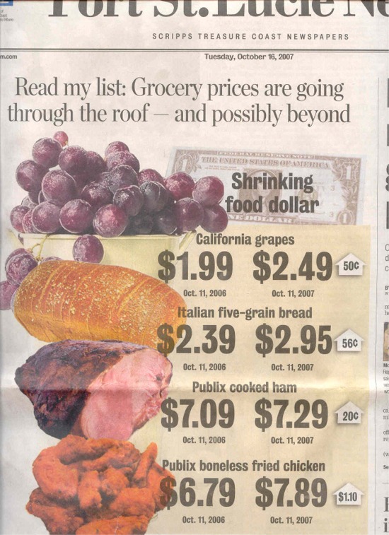 Yeah, I see. You are attempting to apply rocket science to explain to everyone that food prices haven increased any over the last few months by taking a set of pinking sheers to your sunday paper that you are now by endowed with some advance double top secret formula created by space aliens from the planet Trikdopegnathead that you are spending less for food.