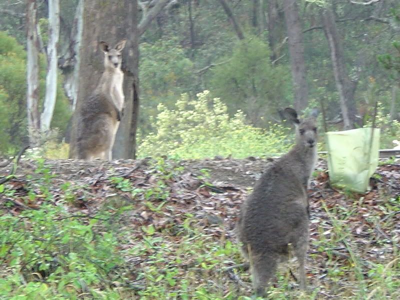 If I ran at them [ I did cause they were near the roadway and there are lots of dead Roo's on the roadside cause they end up hit by cars] they did Hope away. They are scared of people and cars