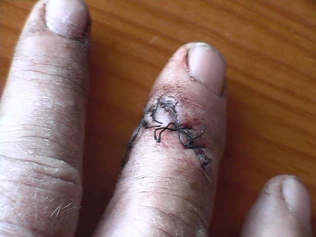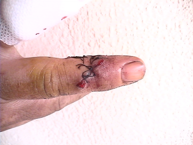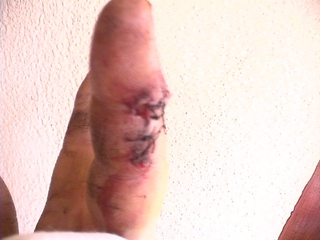 Wow, those Ibuprofeno Alter pack a punch!! 600 mg of pure sleepy-byes!! Thank God!! Pretty painful...especially when you turn over in your sleep, and put your full weight on the wound I had to remove the bandage, because it started to throb...and that means infection...and that is what I have got . So, it is back to hopital this afternoon..wish me luck, guys!! I've used all mine up for now..if the bone had gone, the whole finger would have too Nick