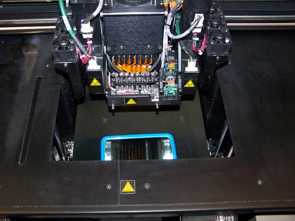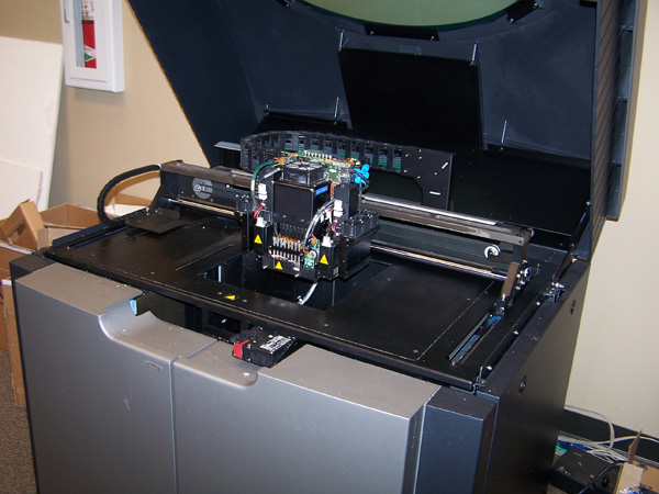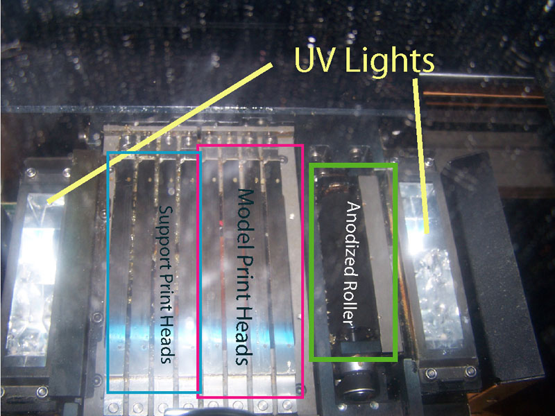 It is the underside of the print head on an Objet 333 machine. The reason the pic looked so dirty is because it was taken off a mirror to see the underside. I had to send a pic to our service guy, it is having some issues with large parts.