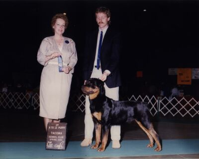 Edit: Oh, and that is NOT my wife, that nice lady was the AKC Judge. In the picture, me at 30 and big Aug at 10 months winning best puppy working class! At the Tacoma Dome June 10th 1989.