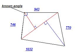 Steve, in Spain we use a comma not a decimal point..sorry!!! So it was 17.2272 in your parlance I did the same as ybnormal 74, taking an average of the sides, and converting the square feet to acres. It is not totlly accurate, even though I displayed the full decimal points ..you actually need one angle of one corner to be exact. The way to calculate it, with the one angle, is to divide the area into two, by disecting from one corner to the opposite corner, so you end up with 2 triangles with a common third side. Then you can calculate the common third side,and the other three angles of the area. You then drop a vertical to the opposite side of the triangles, and work out the area of the four rightangle triangles you have ended up with. add the four areas, and you have the total area in square feet. Then convert to acres Nick Steve you have a PM