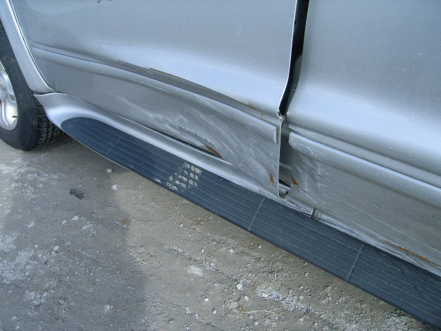 what i see is: drivers side doors have damage, and the rocker area under the door as well as the running board.