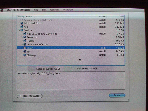 10. Congratulations! OSX is installed on the Wind, and you can remove the install disc as you won't need it again until your envious friend wants to make one for himself. I suggest you visit Lifehacker for a bunch of tips and tricks for OSX. Also, doing the non-program updates (system updates) will screw it up; they attempt to modify the modified kernel. For now just update iTunes and the like. If you have any questions or need any help, feel free to email them at guides@uselessninjas.com and don't forget to visit their blog for our latest exploits/hacks/spouts of boredom.