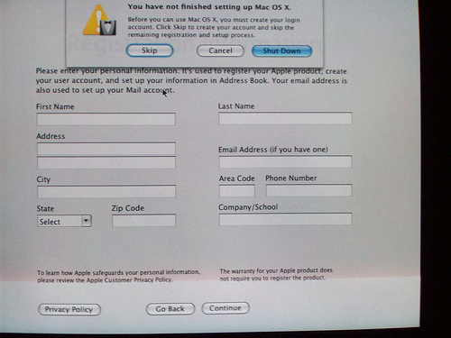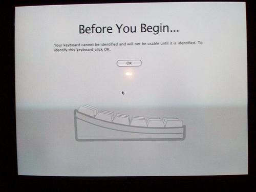 8. The screen that asked you hit any key to boot from the disc should come up again; this time just let the timer run out. It will take a minute but the OS X set up will come up, just follow the very easy steps.