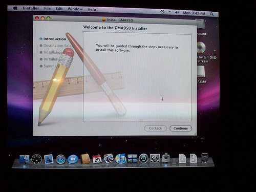 9. After it has restarted, open and unarchive the other file that you downloaded, install the GMA950 package, and restart a final time.