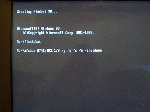 3. You can skip this step if your BIOS is version 1.50 or later. If you are like me and got your Wind with BIOS under 1.50 then this is for you. Install the HP format utility from the downloads page (here). While this is installing, find a flash drive. Once you have found the drive (probably in a pair of pants) back up all needed files on the drive onto your computer. Extract the Windows 98 boot files to a folder on your desktop or something (not the flash drive). Now run the HP format utility, check the DOS boot files box and browse to the win98 files. You can either format the drive as fat or fat32, (didn't try ntfs) and apply. Once this is done extract the msi Wind bios update to the drive root and eject. Plug the drive into your Wind and mash the F9-F12 keys while booting to get to the boot menu. Select your flash drive. The Windows 98 DOS screen should shortly follow when it does type in "flash.bat" and hit enter, after it is done your Wind should restart, pull out the drive. Your Wind may come up with a bad BIOS checksum error (mine did) ignore it (hit F2) and proceed.[/color]