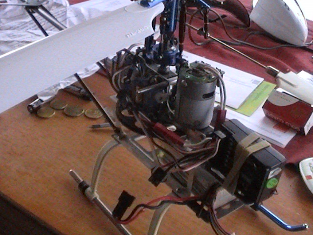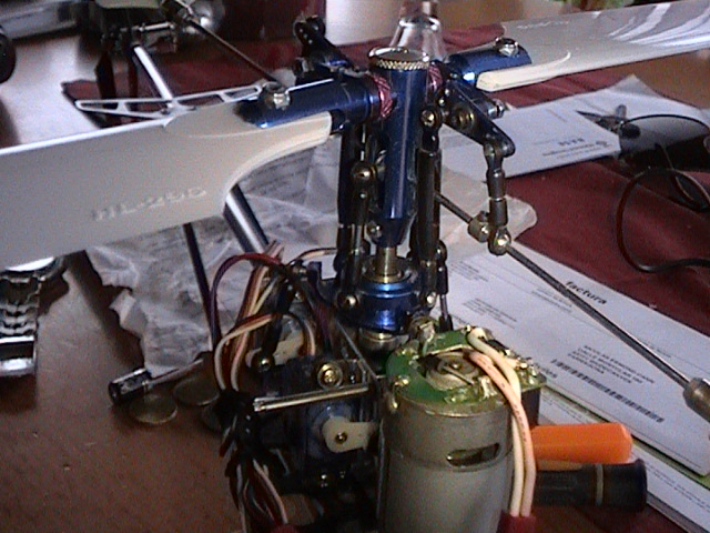 Anyway, I fitted a new aluminum head unit, new rotors and tail rotor. I have it almost right except, when I increase the throttle to get it to lift off, it moves to the left, despite adjusting the connector arms for ever. I have heard that the wash from the main rotors can cause this, when it hovers too close to the ground.