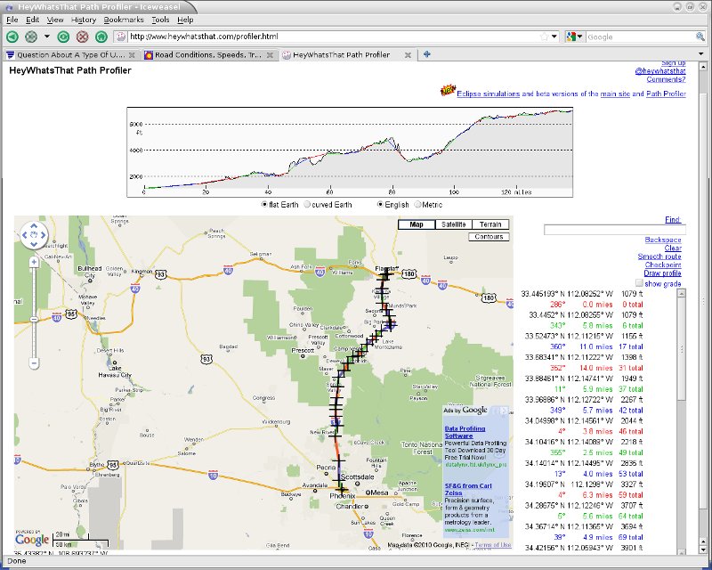 We're looking at houses in Oregon to buy when we sell our present house and move out there. I use Google Earth's view feature on the right side of the map and like my profile maps, it is a little distorted but still fairly accurate. When they put it on GPSs, it will be a great tool.