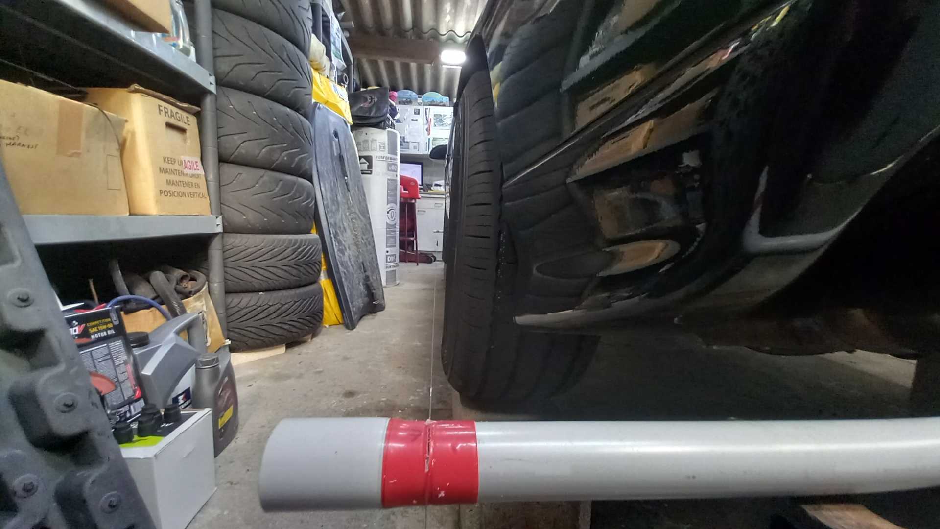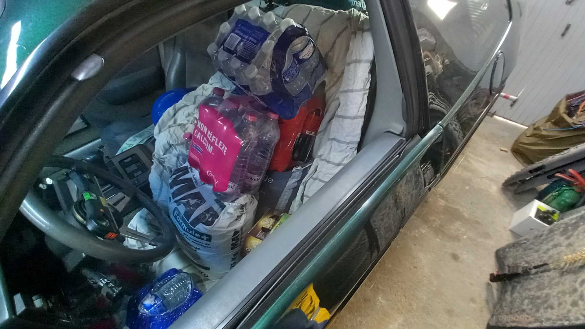 Doing the alignment (again) with the necessary weight in cement sacs and bottled water to simulate me in the driving position: