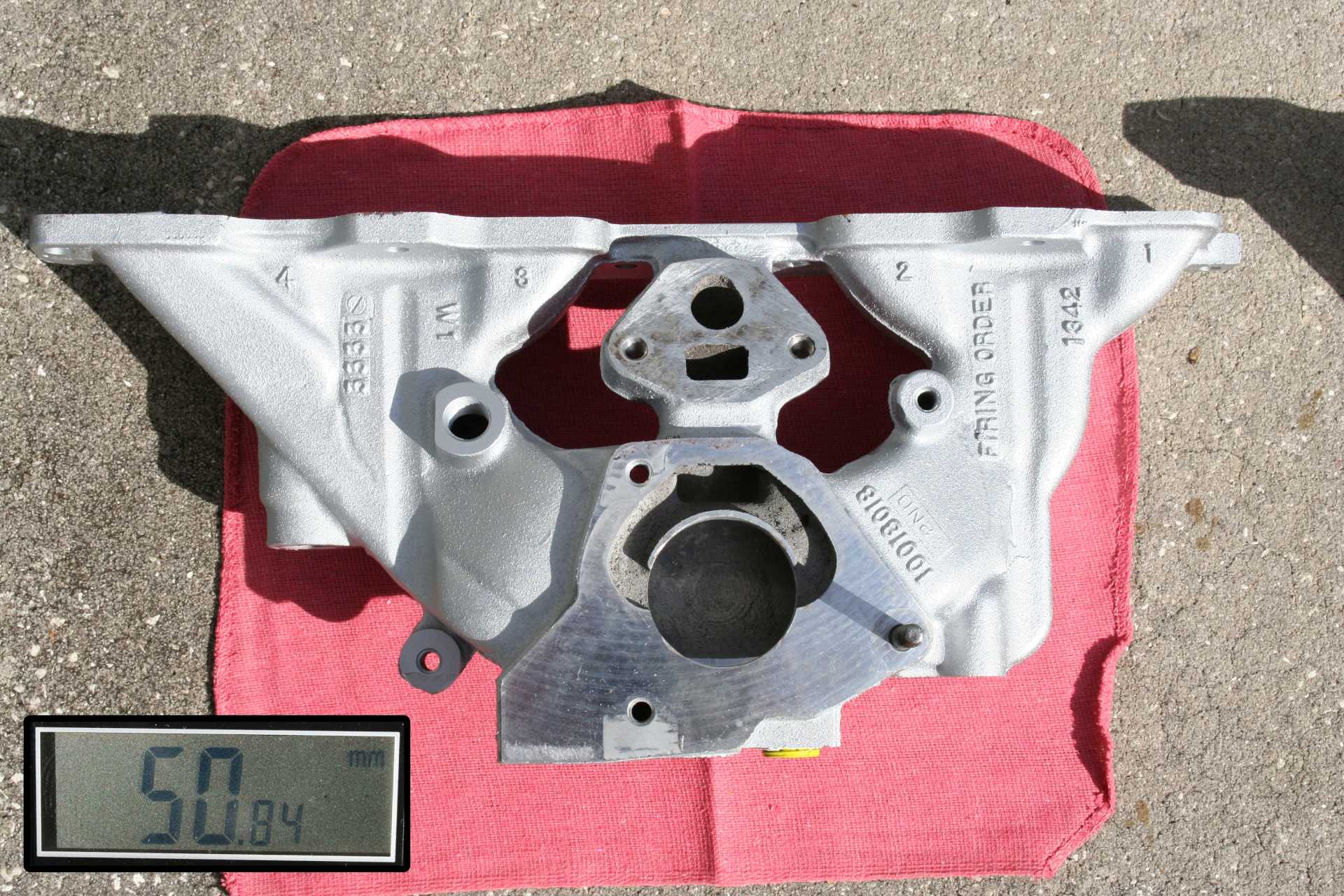 In addition to this, I purchased a spare intake manifold off eBay and I sent that to my local machine shop to have it bored out as well. I don't want to run into the issue of also having that undersized because of the fuel atomizer... so I asked them to bore it to 47 mm, and then I'll be able to expand out the fuel atomizer, and still get the full 46mm bore size from the TBI unit through the intake. There's also a thread (somewhere), which I'll find that talks about how to modify the fuel atomizer to get a bit more flow through there and still have it function properly. Removing it all together usually gives about ~2hp (dynoed) on an otherwise totally stock Fiero. But the fuel ends up pooling and doesn't distribute properly to all four cyls like it should, so you really do want to keep it in there, you just don't want it to really restrict airflow (as it does now).