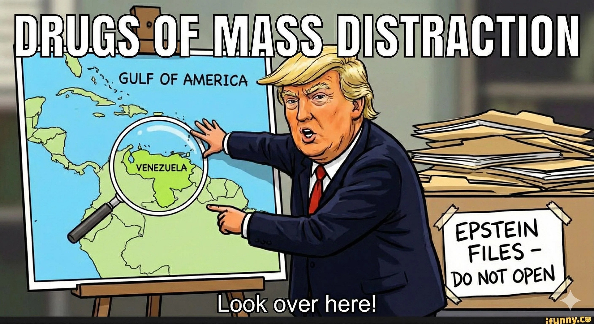 It's amazing the lengths Trump will go to distract the public from the Epstein files. Imagine, invading a country and kidnapping its president and his wife. There must be some juicy/incriminating Trump/Epstein stuff still hidden away... but for how much longer!