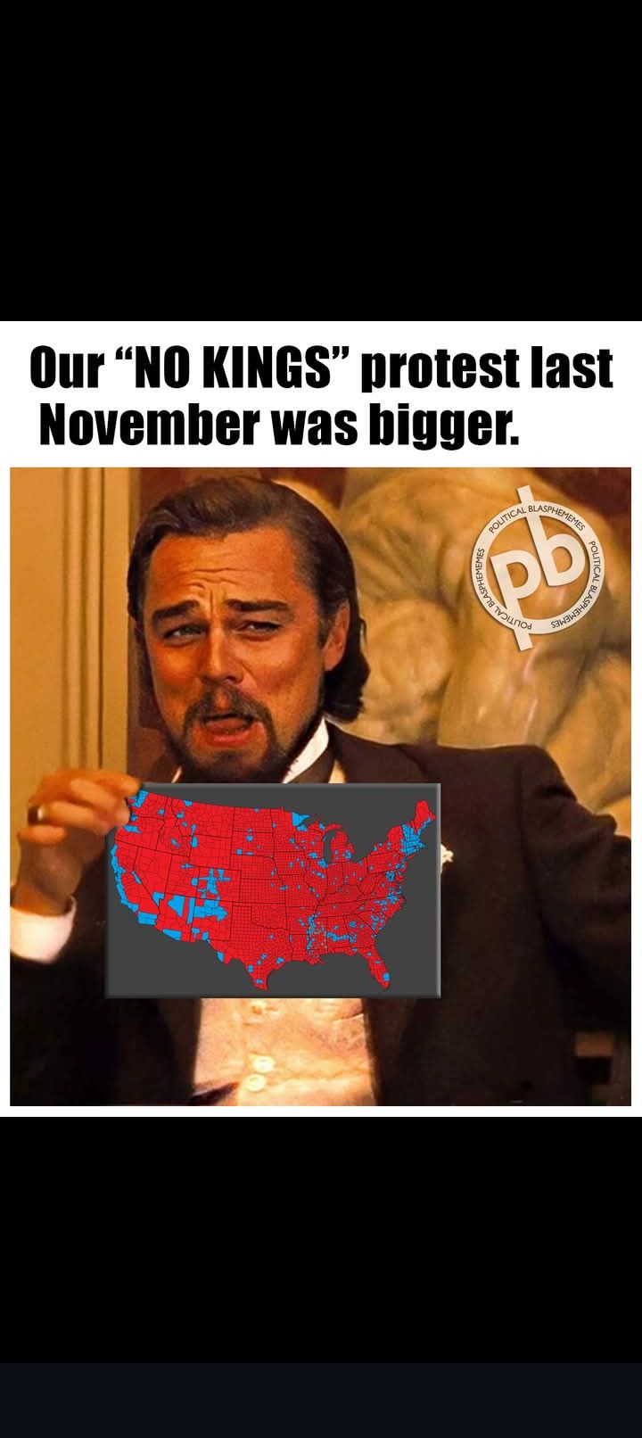 Edited: Local news just showed a report on Memphis's "No Kings" event. The spokesman for the event (a Dem State Rep for Memphis) was attempting to brag about the 5,000 people estimated attendees and stated how proud he was of these people, some came from as far away as Philadelphia, Chicago and LA.
