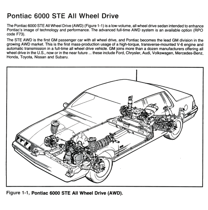 The only way to get the Fiero AWD without butchering the car, is to install an electric motor up front driving the front wheels- that only runs during accel and maybe torque vector during turns- Don't ask me how to set up the electronic control for the torque-vectoring, tho!