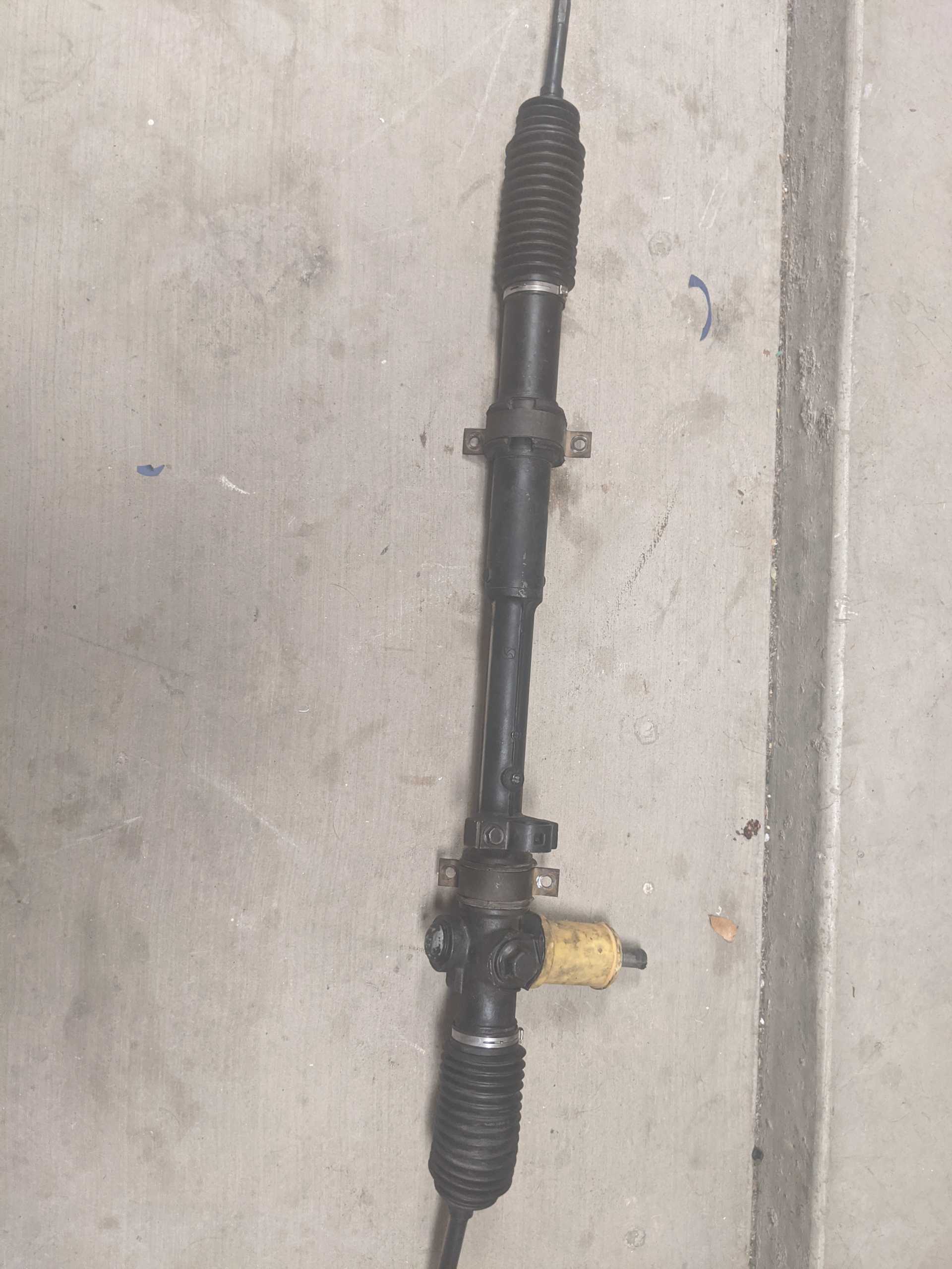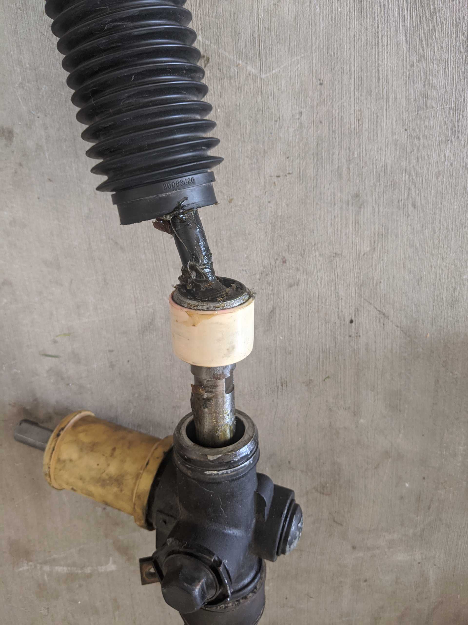 Indeed, the rack is fairly fresh. Everything looks very good on it. Sadly, someone, probably during installation, gashed the pinion seal and broke the needle bearing housing inside. It appears a chip was then ground up in the gears and I'm getting flakes of metal out while spraying brake clean through the pinion compartment.