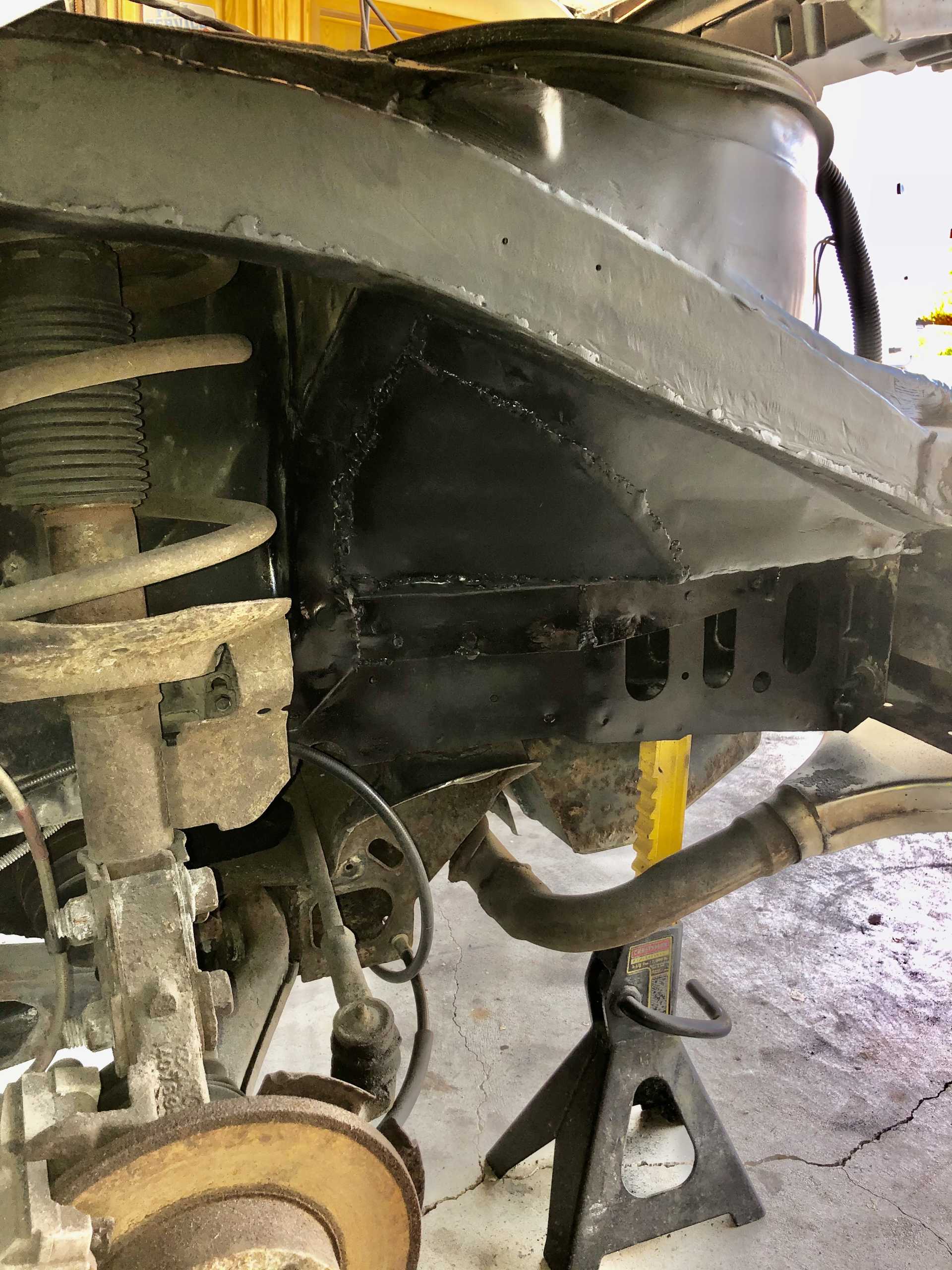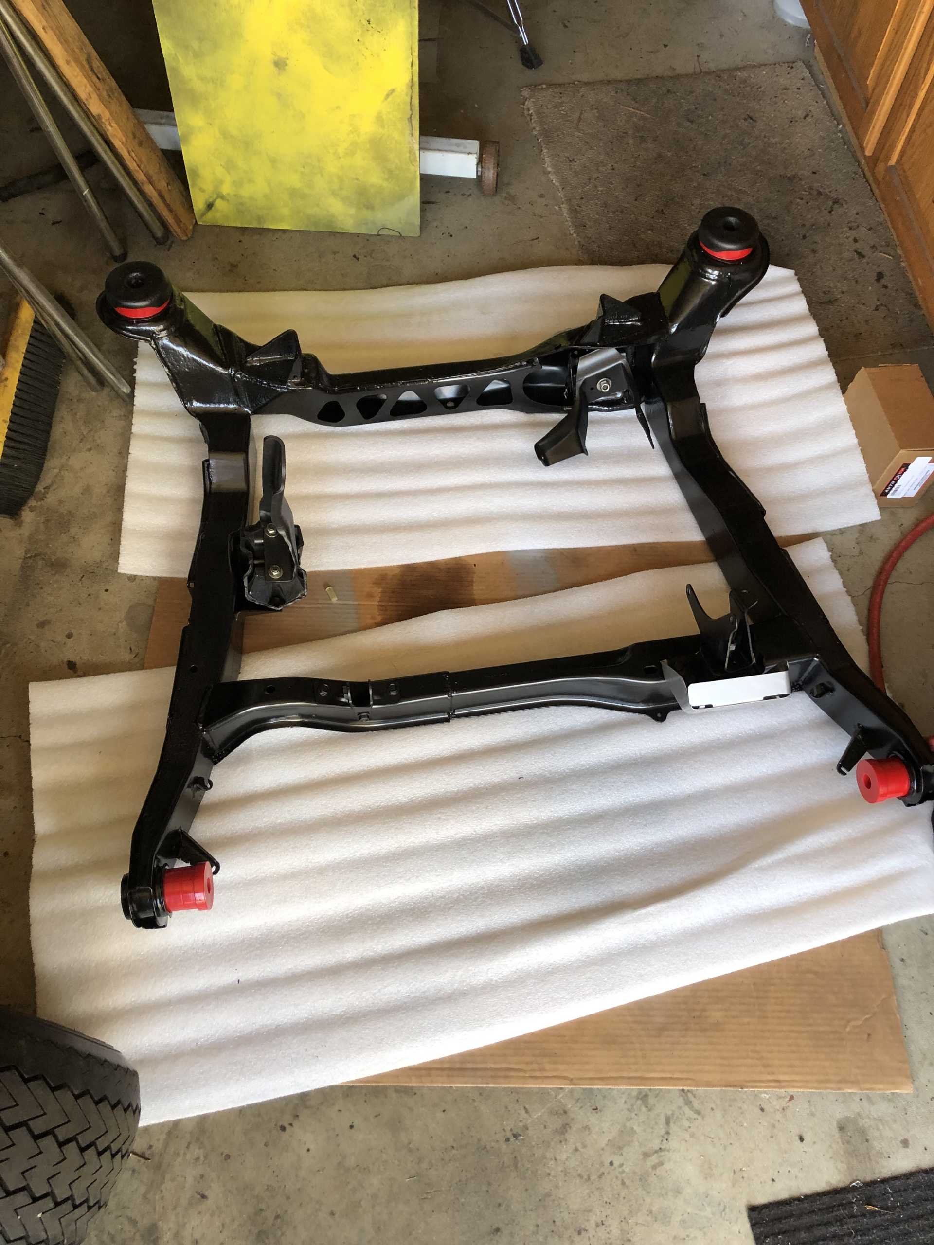 It can be done either way with the stick, but we prefer to mount engine and transmission together then mount the powertrain to the cradle as an assembly. Nice metal work.