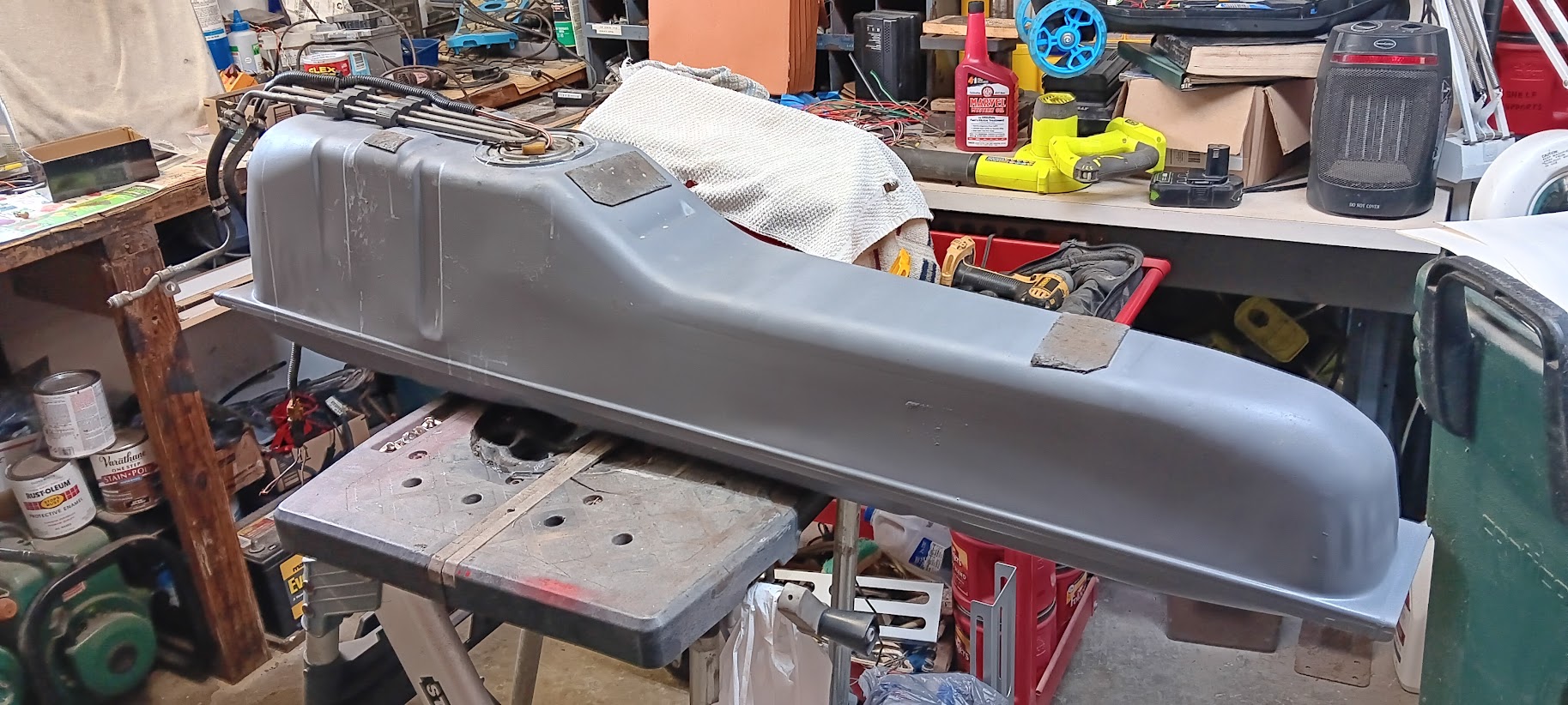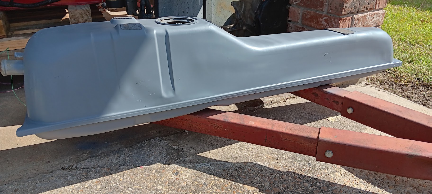 Photo of the fuel tank: I have completed cleaning and coating the 87 GT fuel tank that will be replacing the 86-fuel tank. I am waiting for the coating to cure, about 96 to 100 hours.