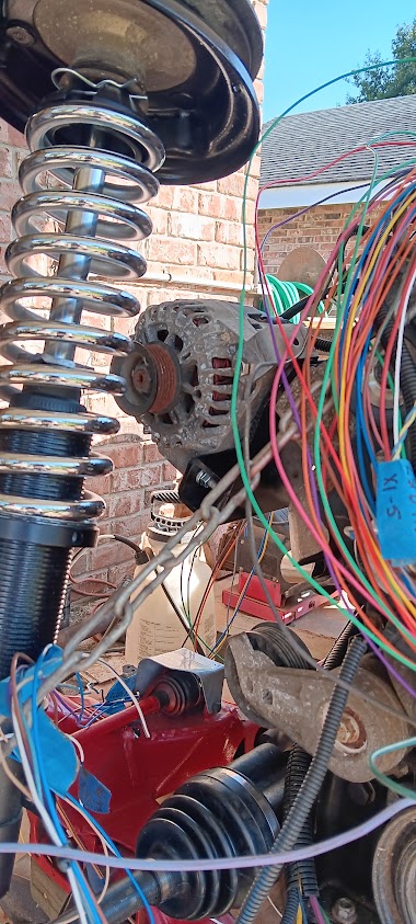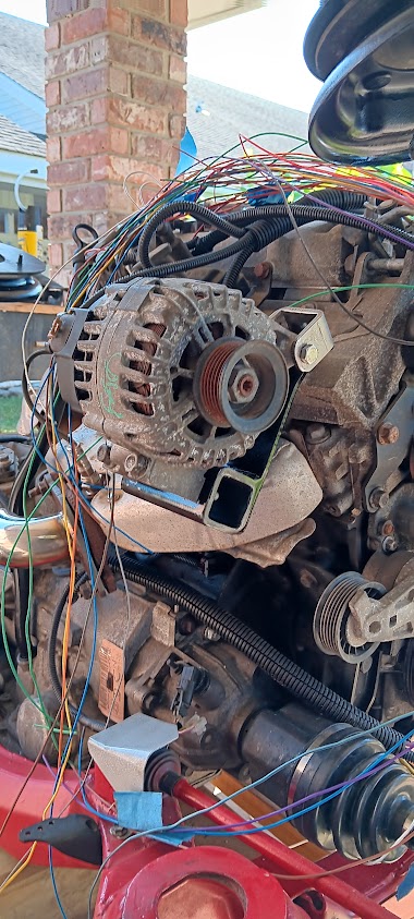 Waiting on my son to complete fabricating the alternator mounting bracket. At first, I had planned to leave the alternator in the OEM location but have since decided to relocate so I don't have to deal with adjusting the engine body cover. Hopefully we have come up with a simple relocation bracket design. Only time will tell once the bracket has been installed.