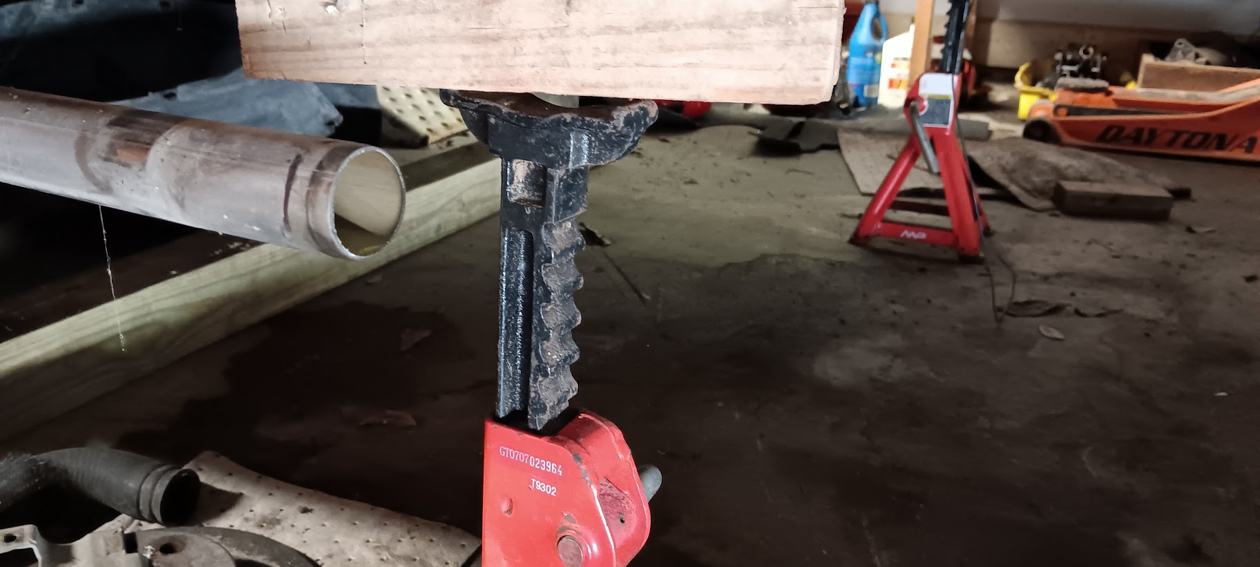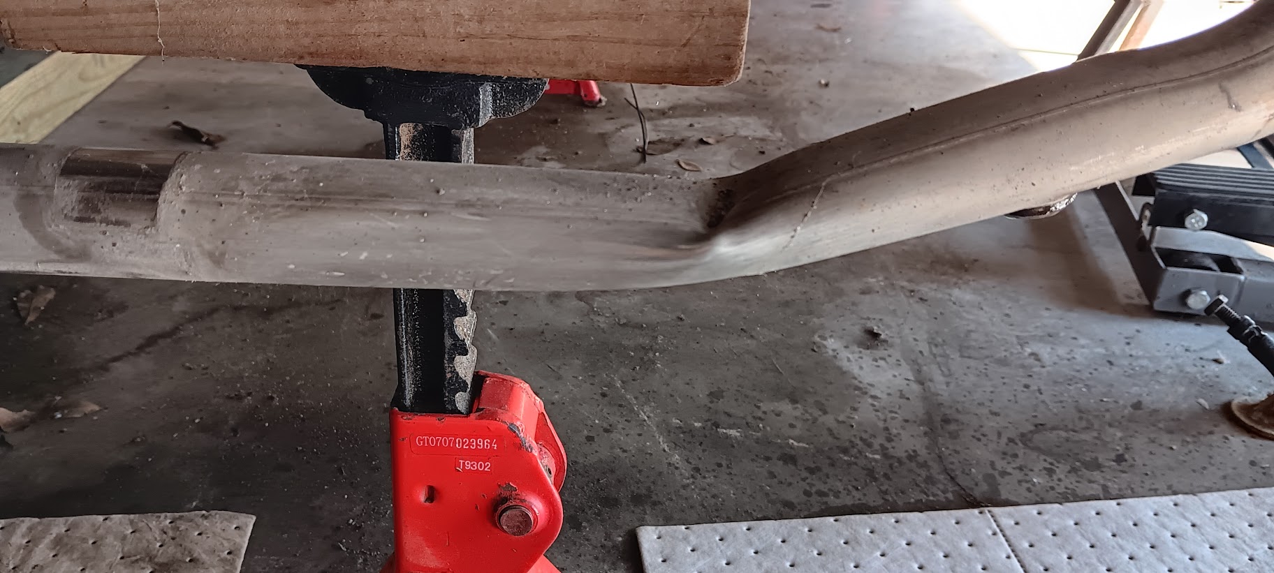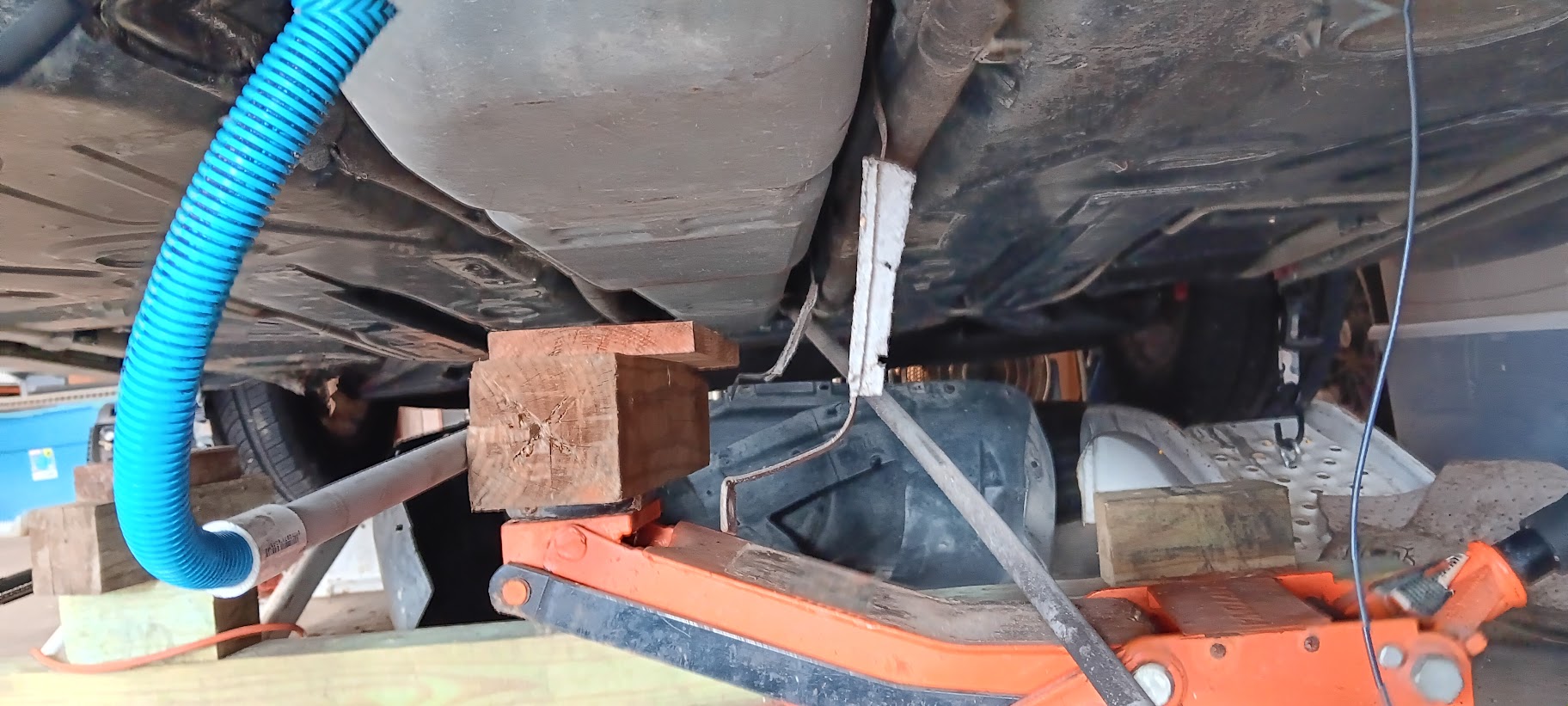 Making preparations to move the engine/cradle assembly to the car's location. But before doing so I need to drop the gas tank. I want to check out the operation of the fuel level sensor. In the past, the fuel level gauge never went bellow 1/2 tank. I suspect that somehow the float for the fuel level sensor is getting hung up. For that operation my son is fabricating two (2) tall jack stands to lower the car unto them from its present position. In conjunction with that operation, I plan on addressing a collapsed driver side coolant tube.