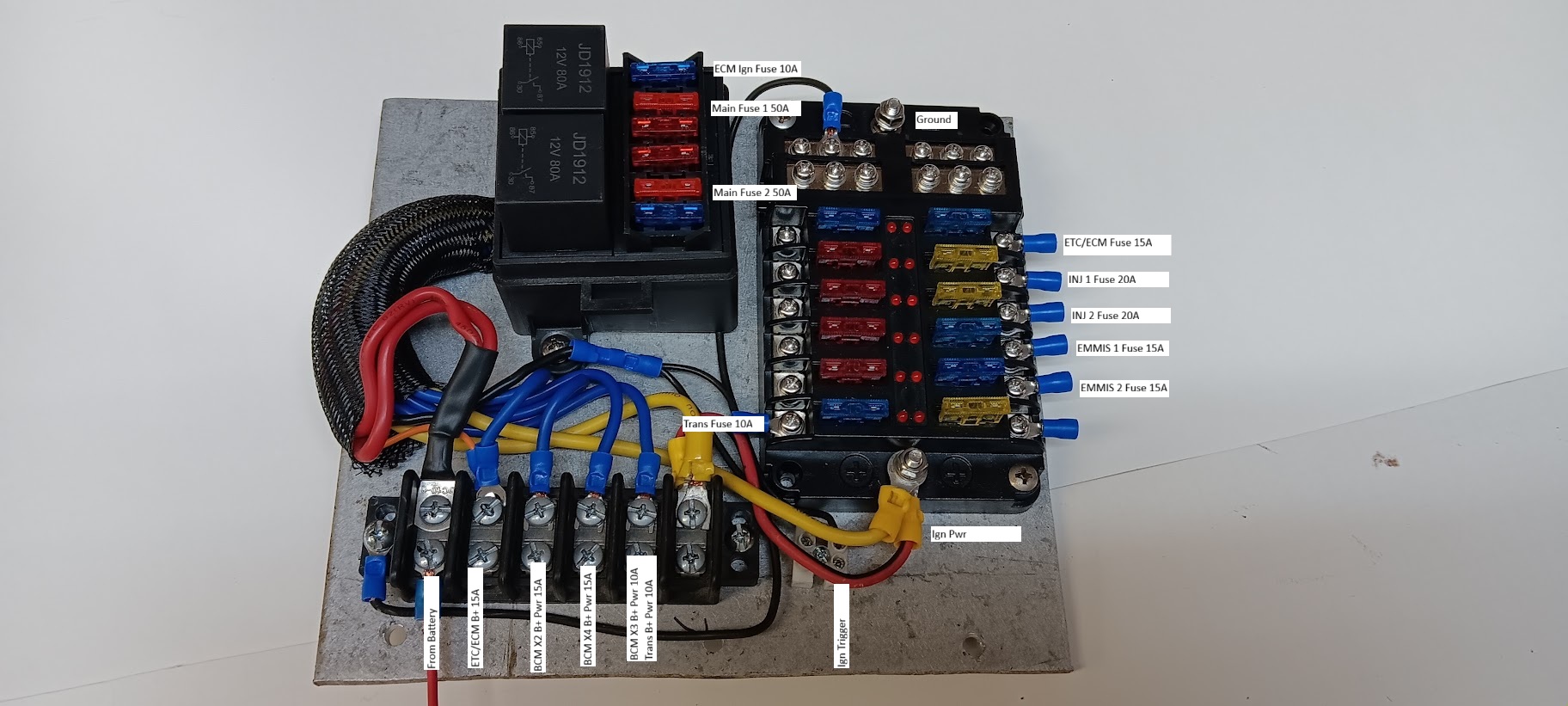 Currently and still working on sorting out the wiring! Recently built the fuel pump & AC compressor control relay blocks and installed.