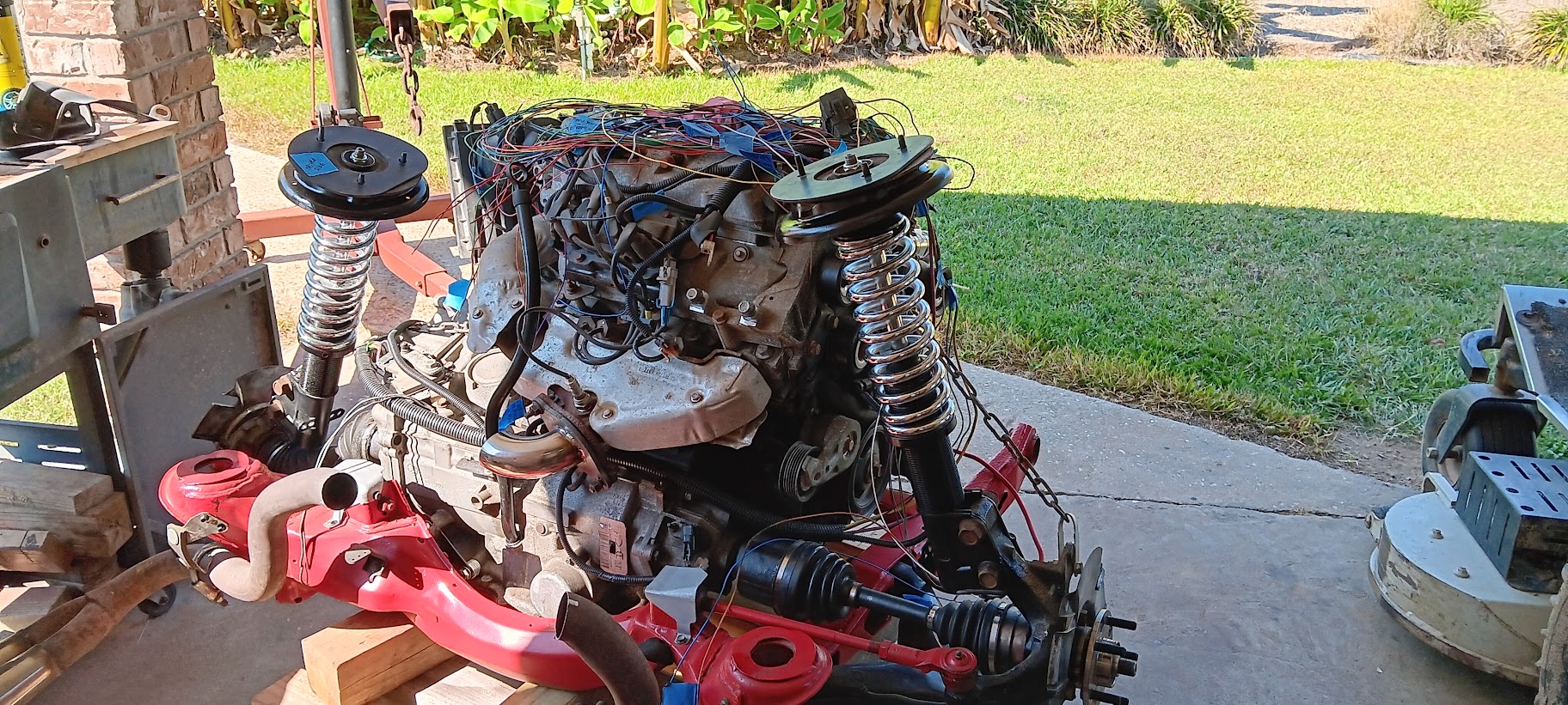 The coil over sleeves have arrived, however they did not slide over the struts. So, they are currently at my son's shop being machined. Hopefully the coil over springs will arrive in the next couple of days.